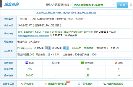 通过爱站我们可以看出网站收录为205,反链为20300网站流量为19-33ip。